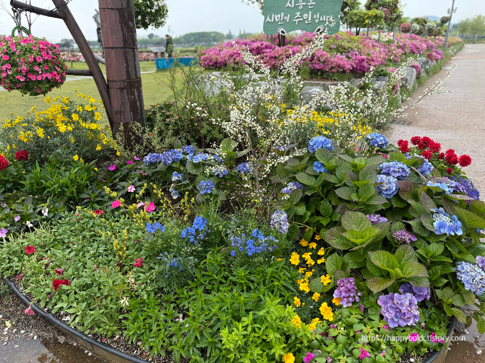 - 4~5월에는 벚꽃, 철쭉, 메리골드, 베고니아, 라벤더, 루피너스 등 십여 종의 봄꽃이 만발해 공원 전체가 화사한 꽃밭으로 변신합니다.